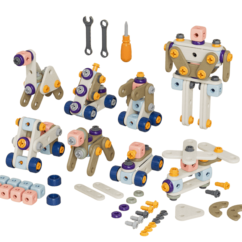 每个孩子都是独一无二的,拼装工具箱提供了无限的拼装可能性。无论是简单的形状,还是复杂的结构,孩子们都能在这里寻找自我的创意发挥空间。通过螺丝与板件的互动,孩子们的动手能力与逻辑思维会得到一定效果提升,这为他们未来的学习和生活打下了坚实的基础。
